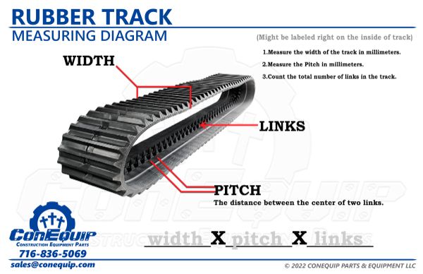 Our rubber track sizing video should also be a help to demonstrate the proper measurement methods. Getting the wrong rubber track can be a terrible experience. Work with ConEquip to be sure your rubber track arrives on time and actually fits your equipment.