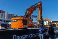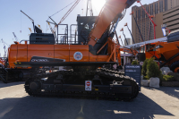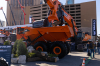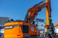 New Develon machines made a striking appearance at this year's CONEXPO, outside in the Fairgrounds, right next other heavy hitters like CAT, Volvo, and Liebherr.