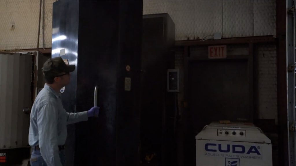 After all debris is cleaned off the core, it is put into a wash cabinet. This is like a dish washer for final drives. After the wash cycle, the final drive core comes out spanking clean.